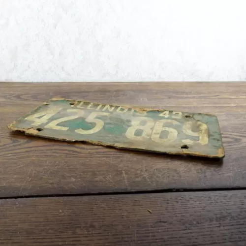 1943 license plates from Illionis were manufactured on soybean-based fiberboard due to metal conservation for World War II. Plates continued to be manufactured in this manner until 1948.