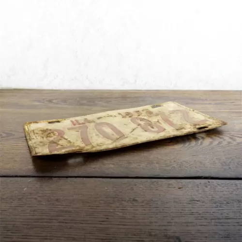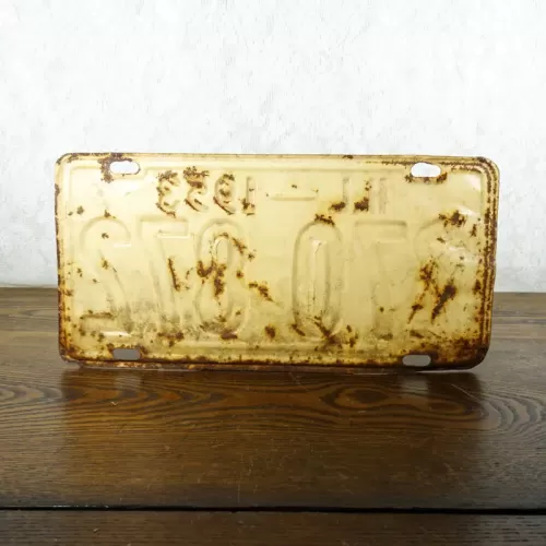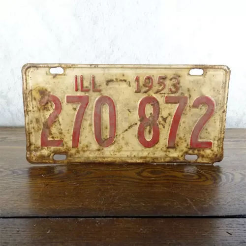 Authentic vintage 1953 Illinois metal automobile license plate with red lettering on a buff background featuring the numbers 270 - 872