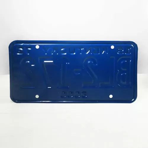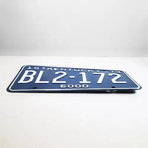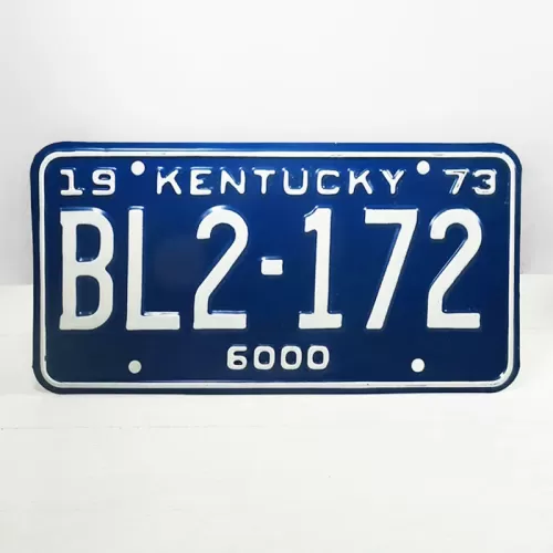 Vintage 1973 Kentucky commerical state license plate with a blue background and white lettering