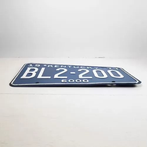 Vintage 1973 Kentucky commerical state license plate with a blue background and white lettering