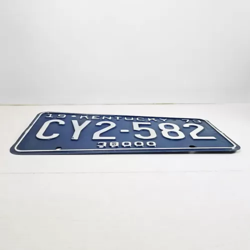 Vintage 1973 Kentucky commerical state license plate with a blue background and white lettering