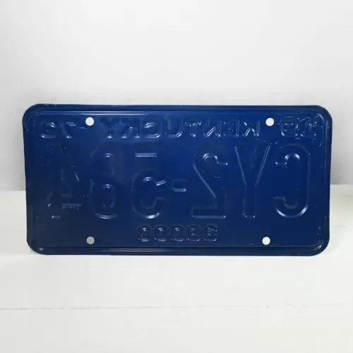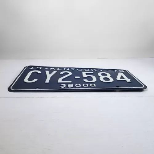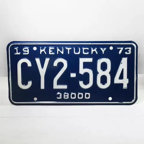 Vintage 1973 Kentucky commerical state license plate with a blue background and white lettering