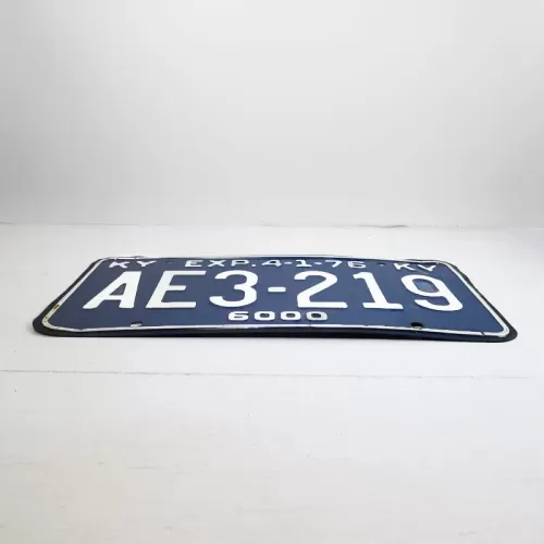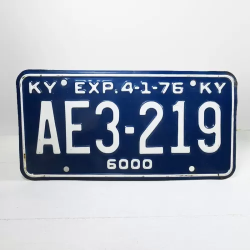 Vintage 1976 Kentucky commerical state license plate with a blue background and white lettering