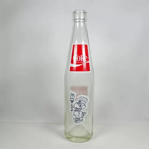 Coca Cola commemorative 10 oz. no refill soda bottle featuring Sam the Eagle