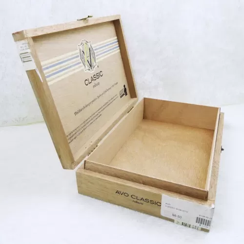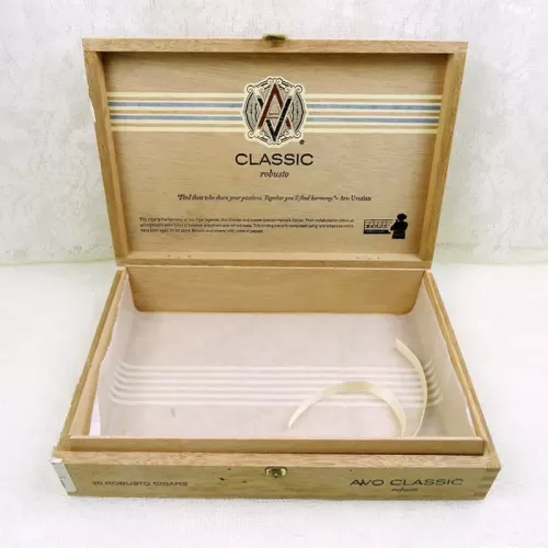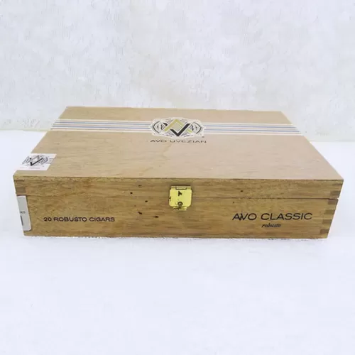 Avo Uvezian Classic Robusto vintage empty wood cigar box with metal hinges and clasp