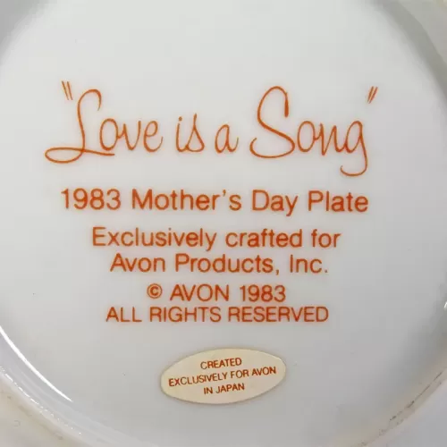 Vintage 1983 Mother's Day collector plate from Avon titled "Love is a Song"