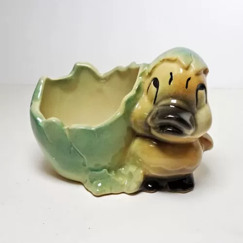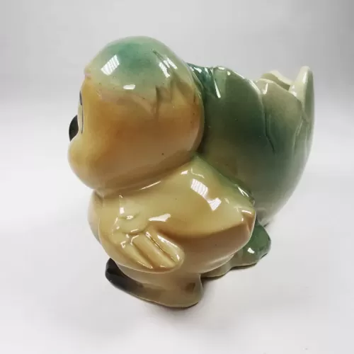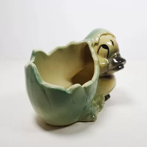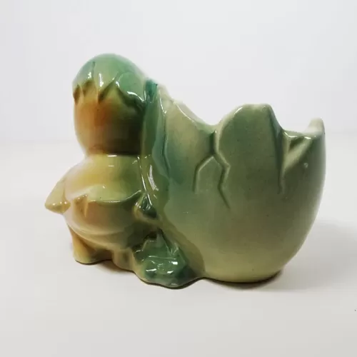 The baby chick has just broke out of its shell and is looking up at part of the shell still on his head