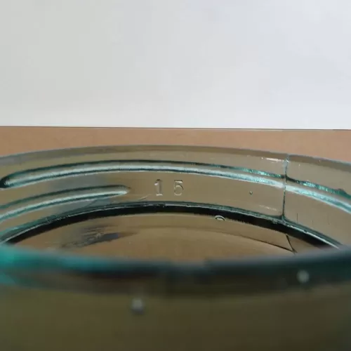 Bottom shows a circle with 3 dots above it and a line below it - Pontil mark or scar