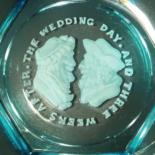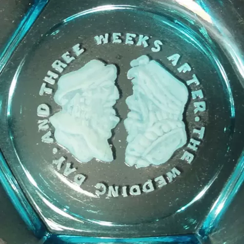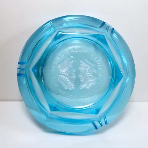 Vintage blue glass novelty ashtray from Westmoreland Glass Co.