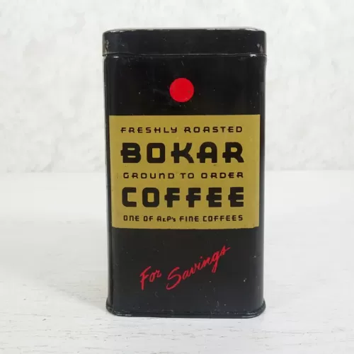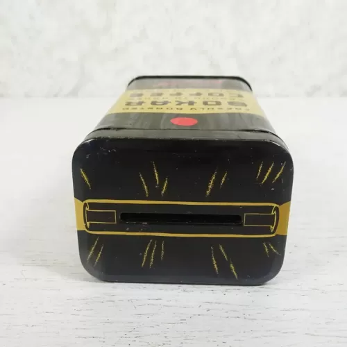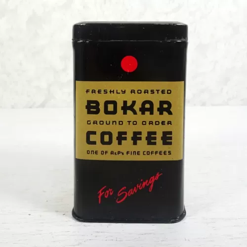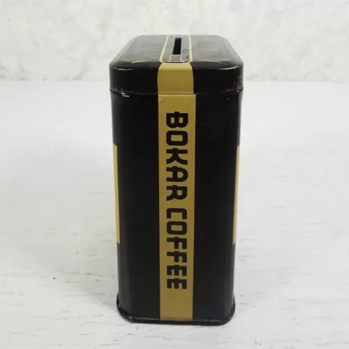 Vintage Bokar coffee metal tin coin bank with coin slot in the top