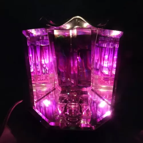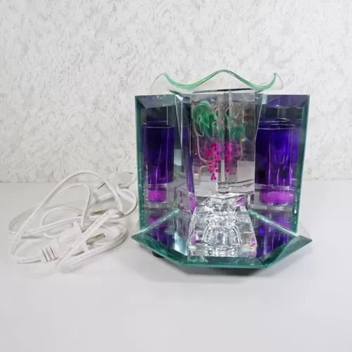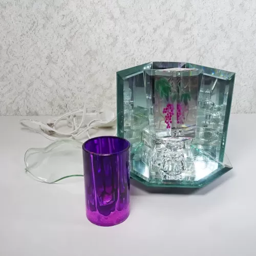 Glass cylinder protects the 35w halogen bulb and produces a colorful glow when turned on