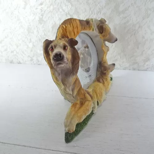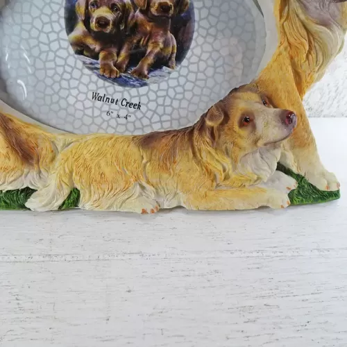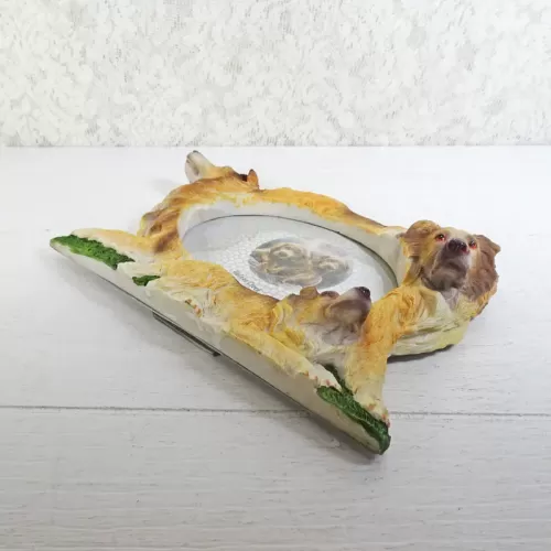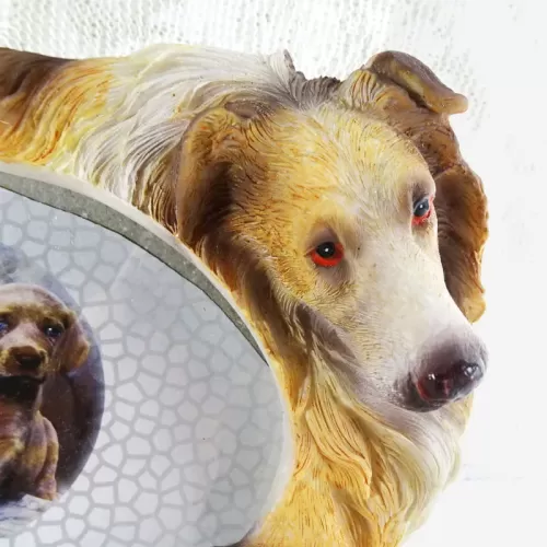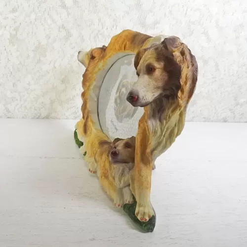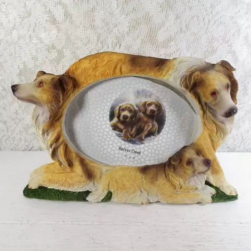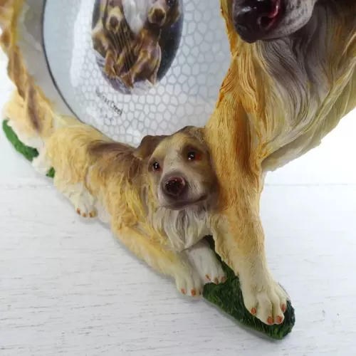 Collie dogs and puppy deluxe photo frame in a detailed, life like, polyresin figurine style