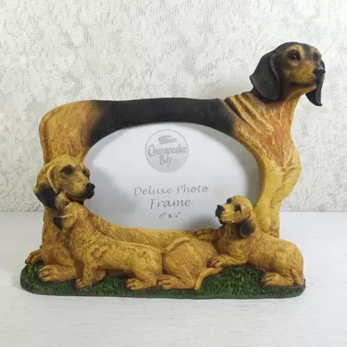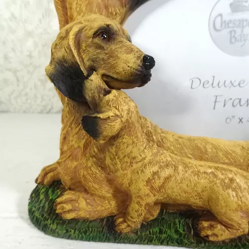 Dachshund dogs and puppies deluxe photo frame in a detailed, life like, polyresin figurine style