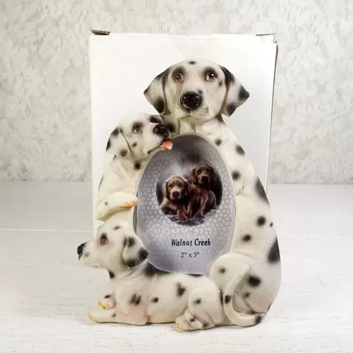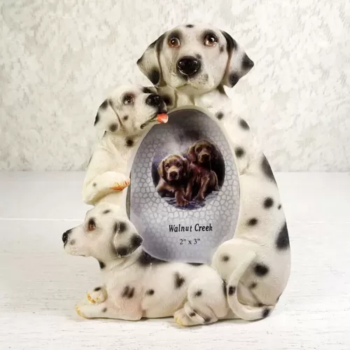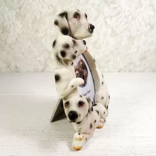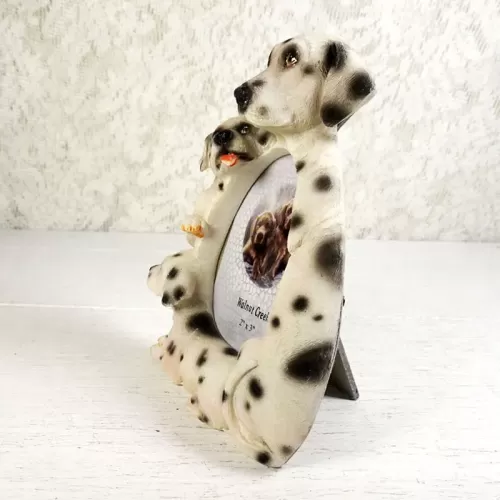 Dalmatian dog and puppies photo frame in a highly detailed, life like, 3D polyresin figurine style