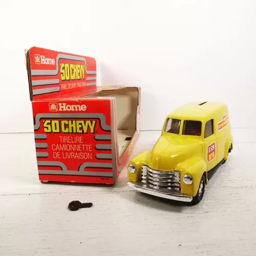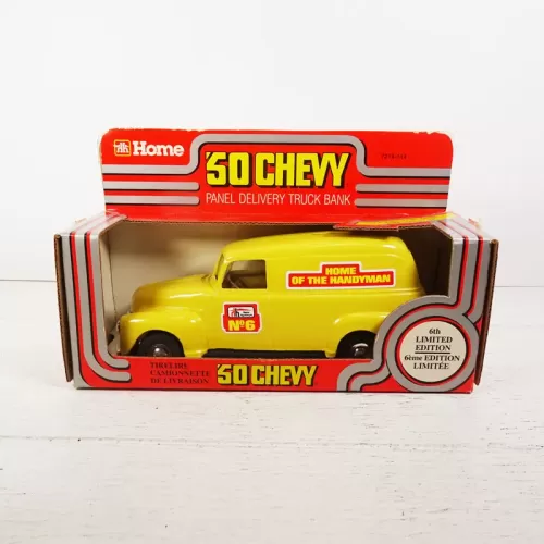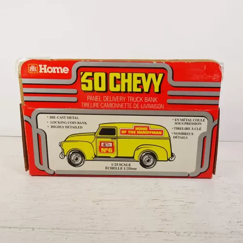Vintage 1988 Home Hardware 1950 Chevy delivery truck bank replica with key in the original box