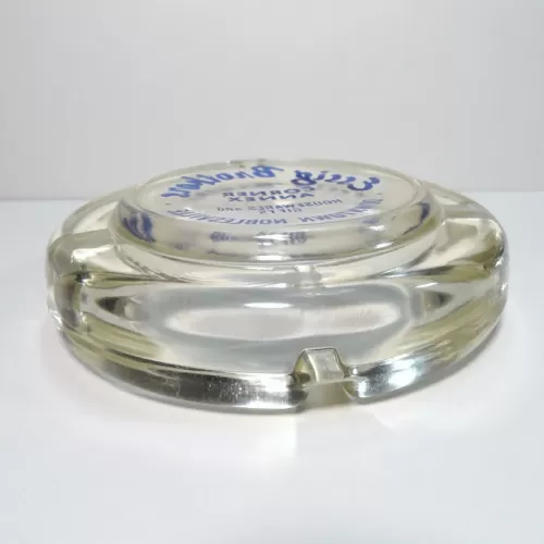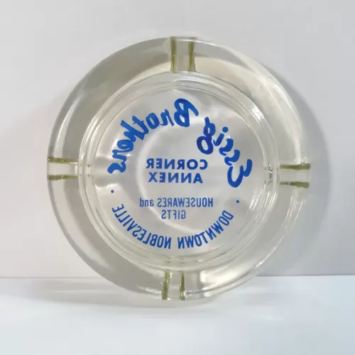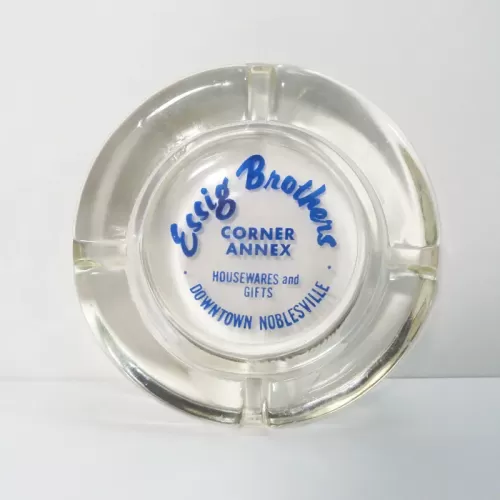 Essig Brother Corner Annex vintage round clear glass advertising ashtray