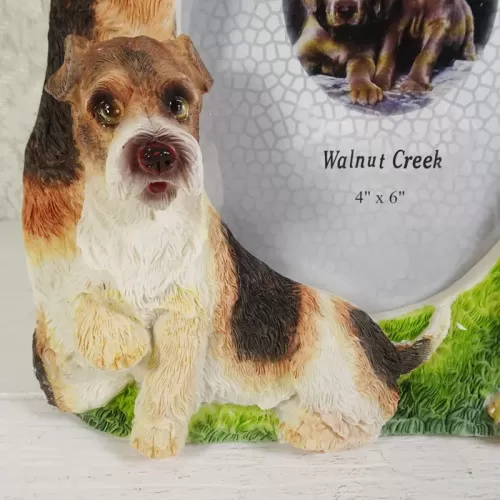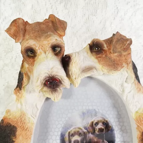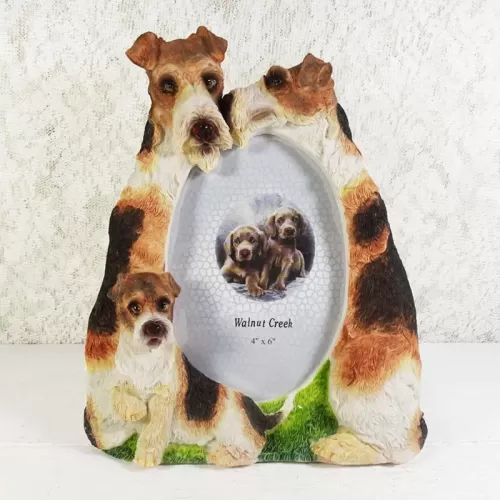 Fox Terrier dogs and puppy deluxe photo frame in a detailed, life like, polyresin figurine style