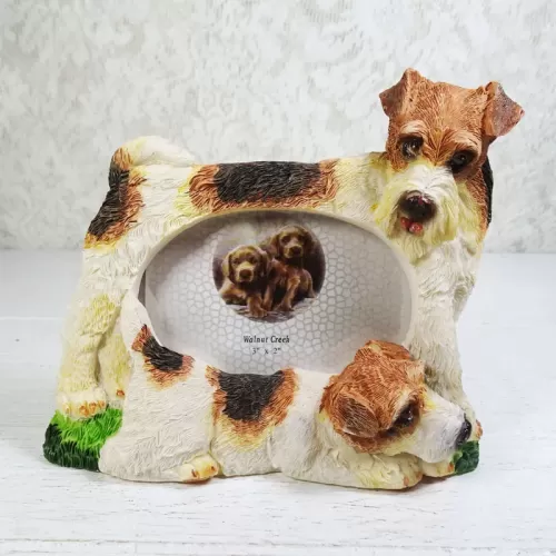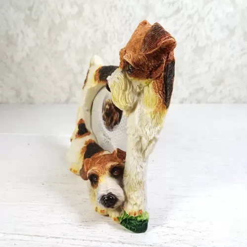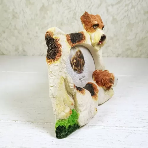 Fox Terrier dog and puppy photo frame in a highly detailed, life like, 3D polyresin figurine style