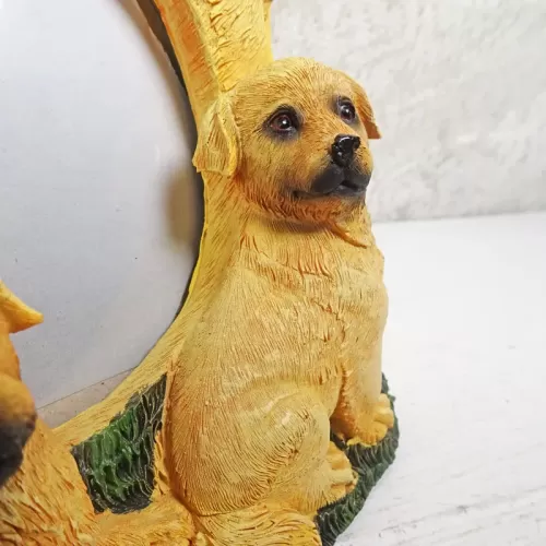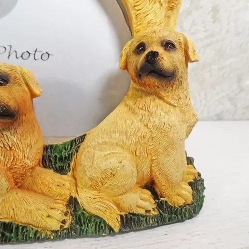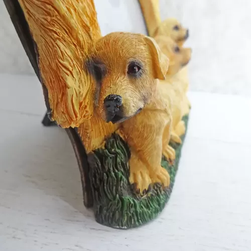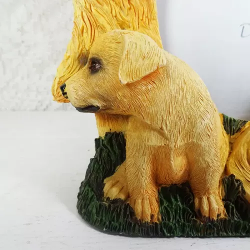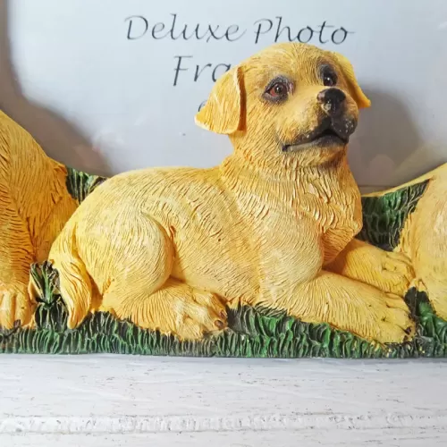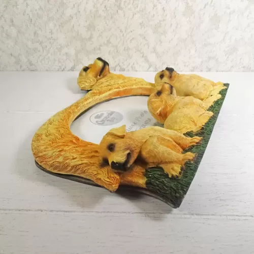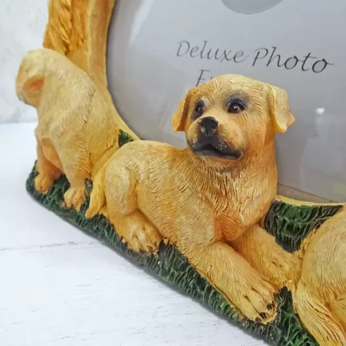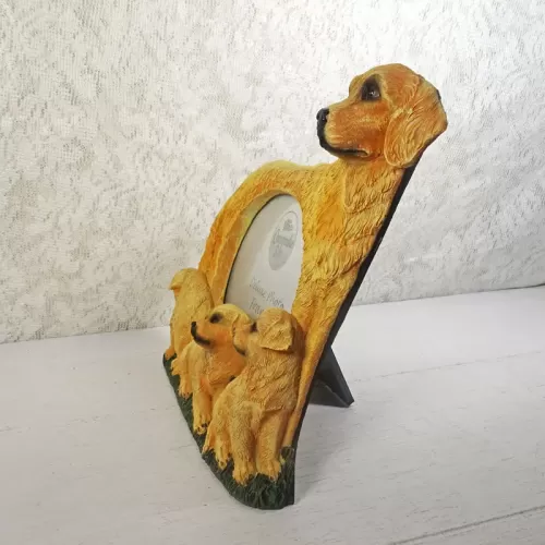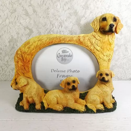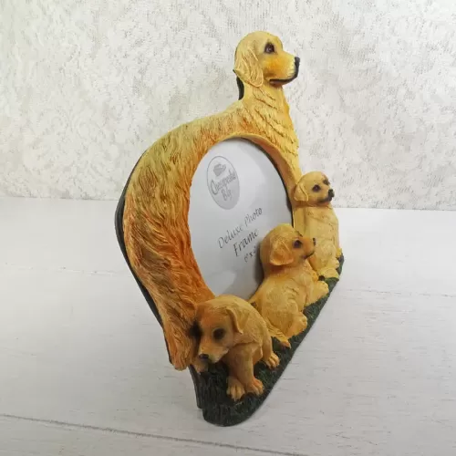 Golden Retriever dog and puppies deluxe photo frame in a detailed, life like, polyresin figurine style