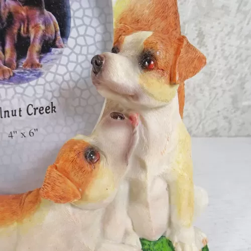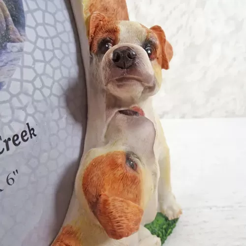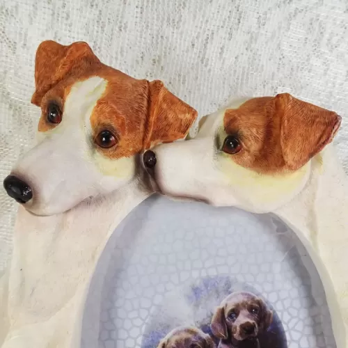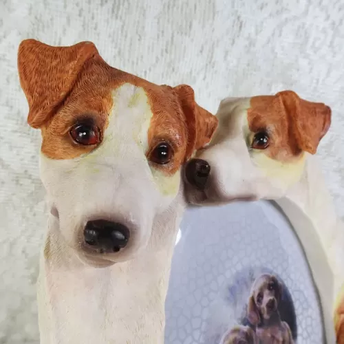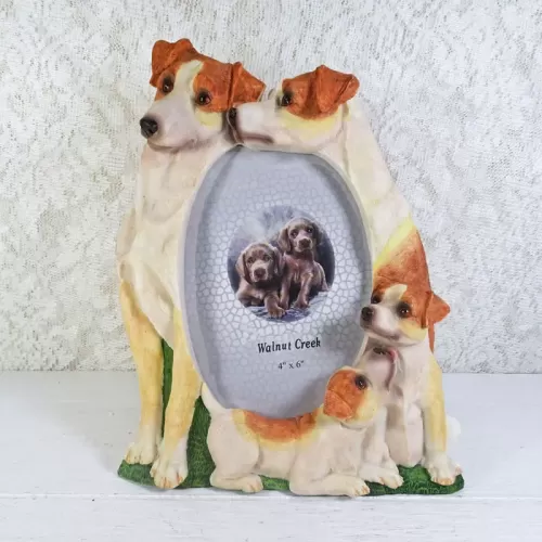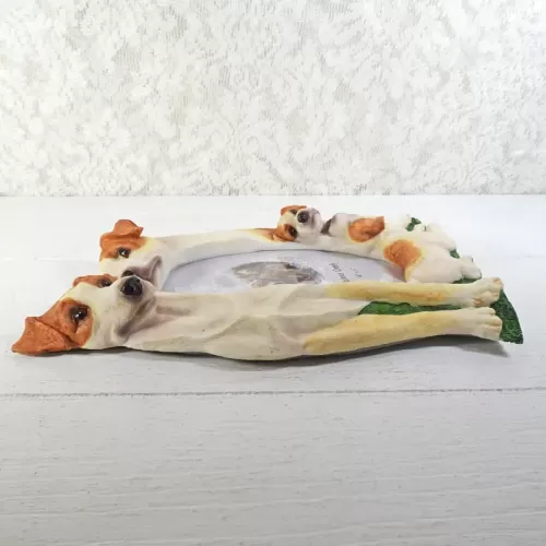 Jack Russell dogs and puppies deluxe photo frame in a detailed, life like, polyresin figurine style
