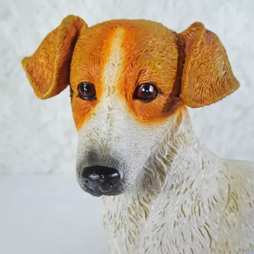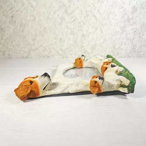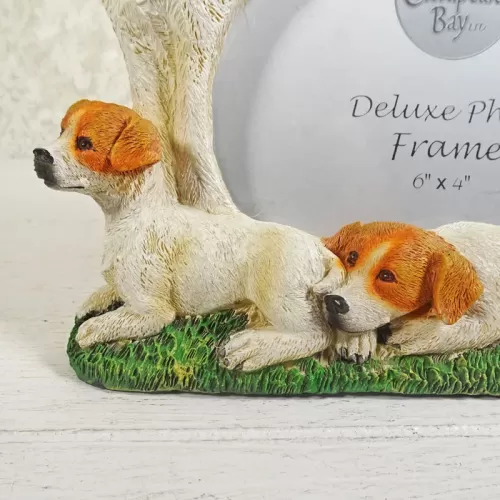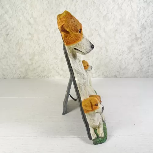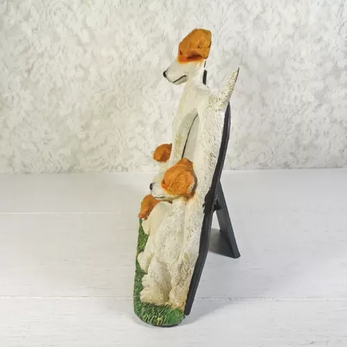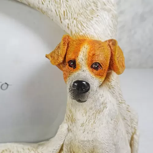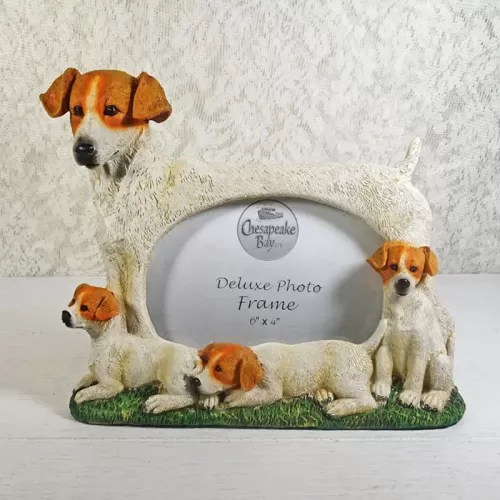 Jack Russell Terrier dog and puppies photo frame in a highly detailed, life like, 3D polyresin figurine style