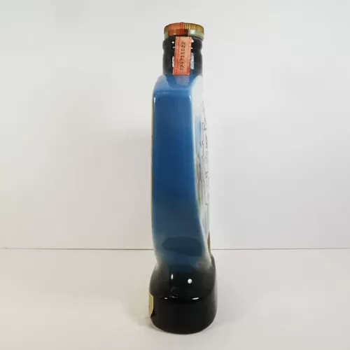 The Jim Beam label on the front is fully intact though a little curled on the bottom edges