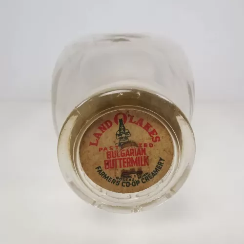 1950 Land O Lakes Buttermilk vintage empty quart dairy bottle with cardboard cap. Square with round corners.