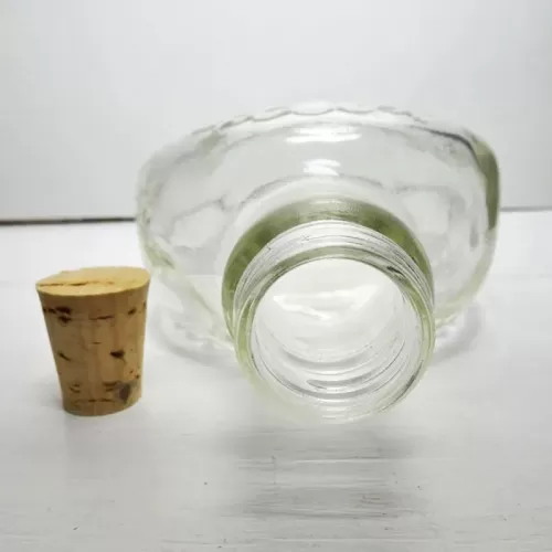The cork is not original to the bottle and does not fit tightly. Cork may be different than shown