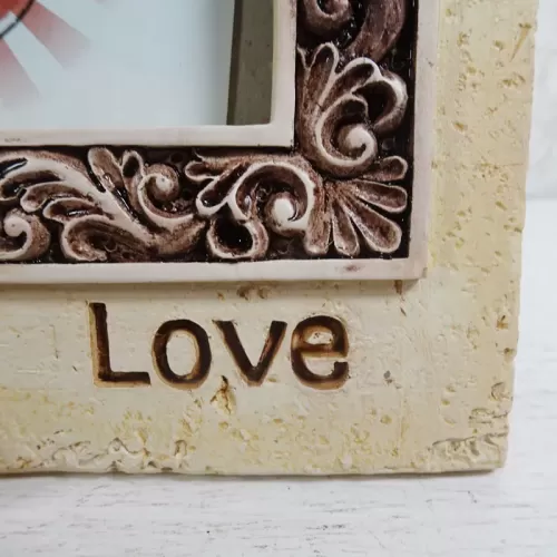 LOVE inspirational picture frame showing a man and woman embracing, emerging from the earth