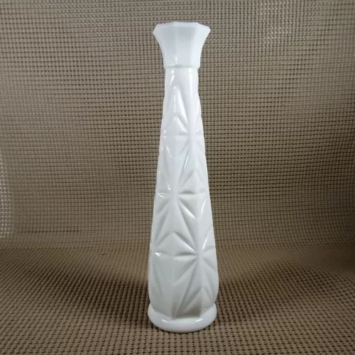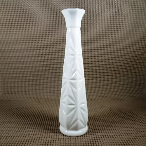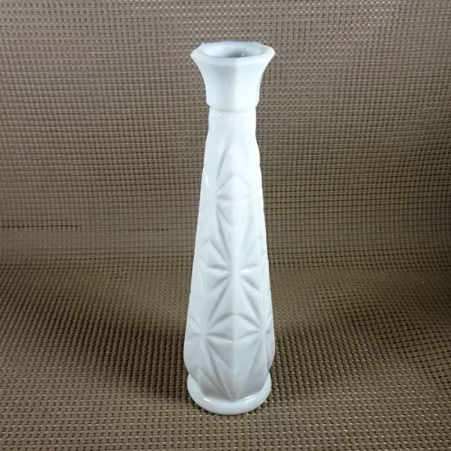 Milk Glass Vintage Bud Vase in Diamond Starburst Design