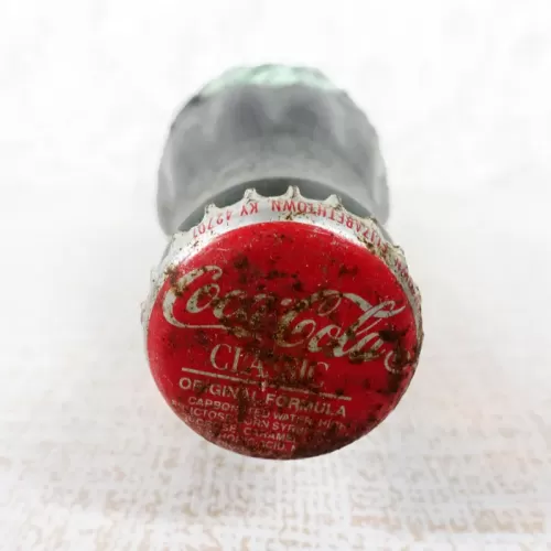 The cap shows a significant amount of surface rust and other surface blemishes, and is readable in parts. Note the writing on the edge