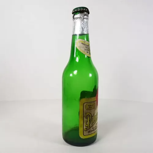 Vintage Pilsner Urquell 12 oz. green glass beer bottle with original cap