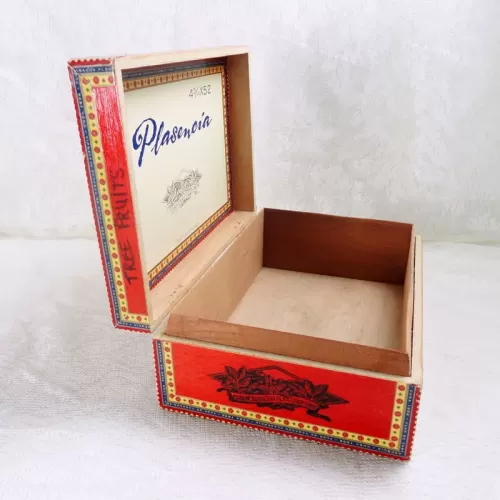 Features brightly colored paper lined inside lid and edges with contrasting black graphics