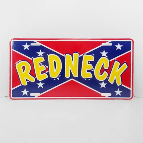 Features the word Redneck in bright yellow lettering and a blue X with white stars and trim on a red background