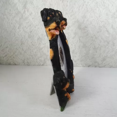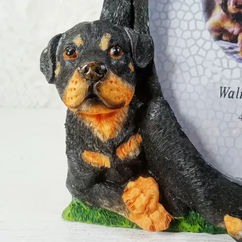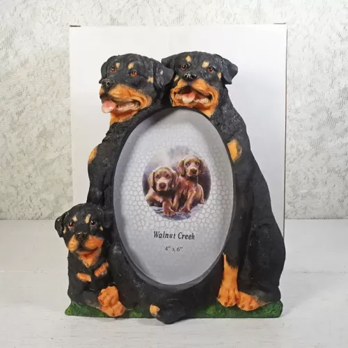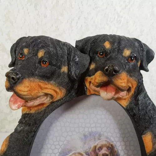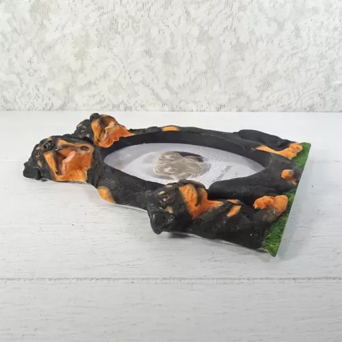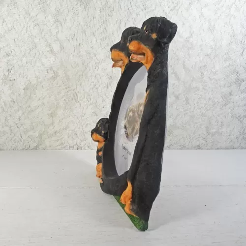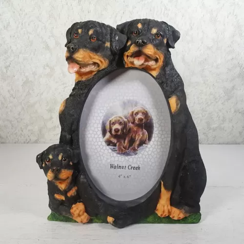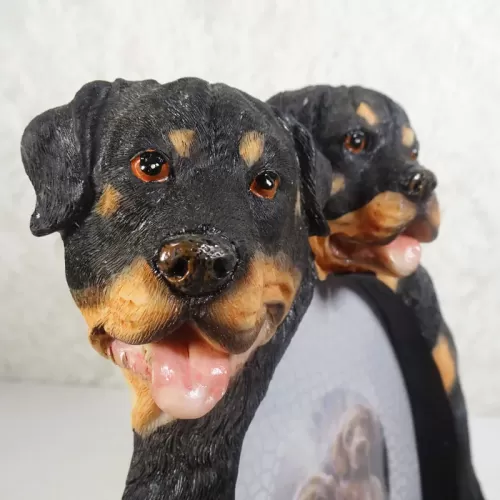 Rottweiler dogs and puppy deluxe photo frame in a detailed, life like, polyresin figurine style