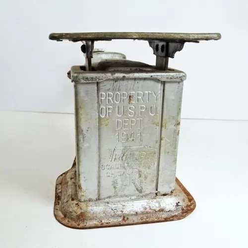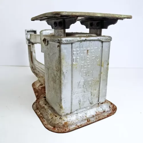 This post office scale has some cosmetic surface blemishes that adds to its vintage charm