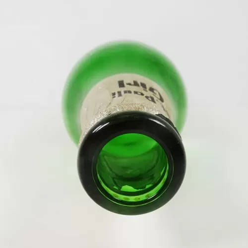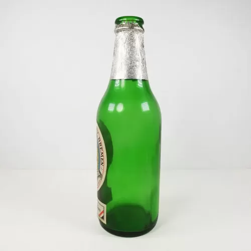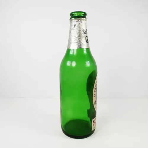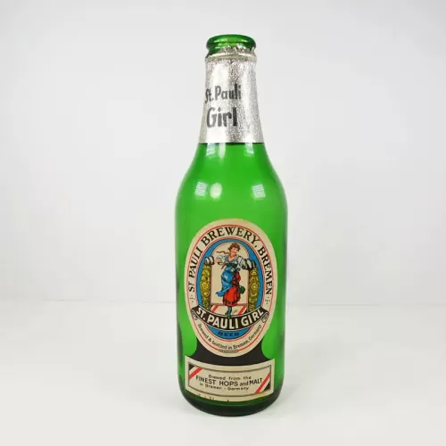 St. Pauli Girl German enpty vintage green glass beer bottle with paper label on the front and silver foil around the neck