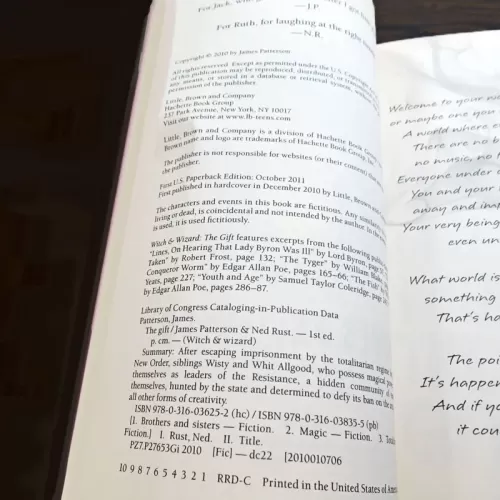In this second installment of James Patterson's epic Witch & Wizard series, Whit and Wisty's heart-pounding adventures through the Overworld and Shadowland lead to a spectacular climax and conclusion.