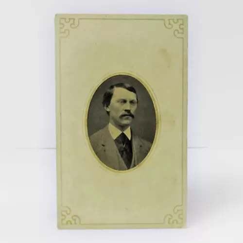Image of a well dressed man from the shoulder area up sporting a full mustache