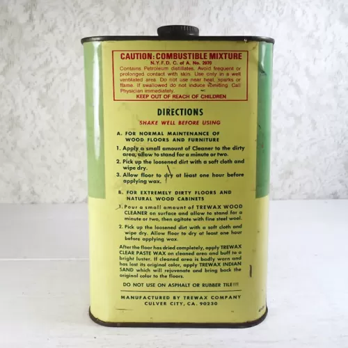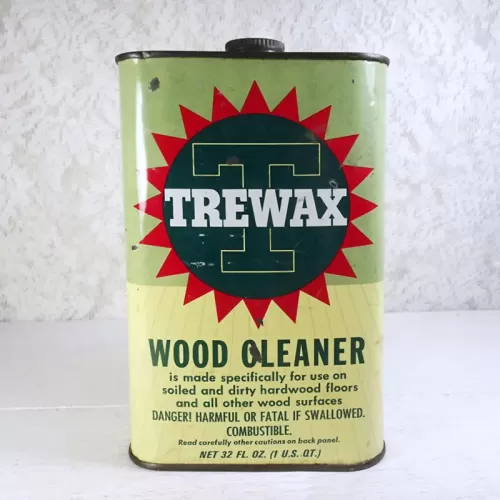 Vintage Trewax vintage one quart wood cleaner empty metal tin can container with metal twist off top
