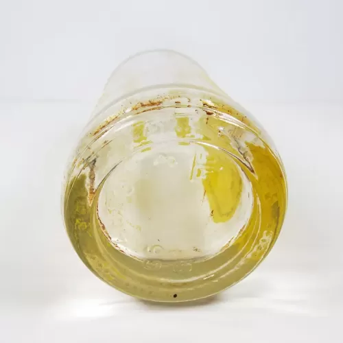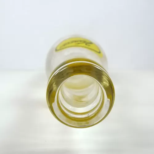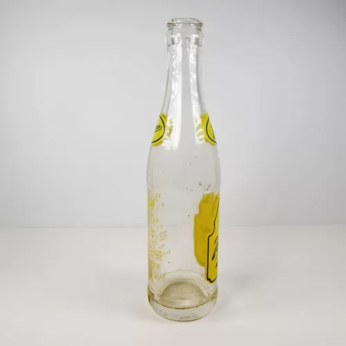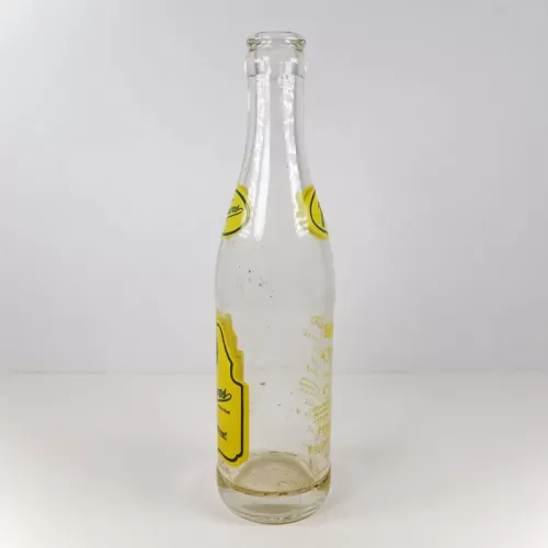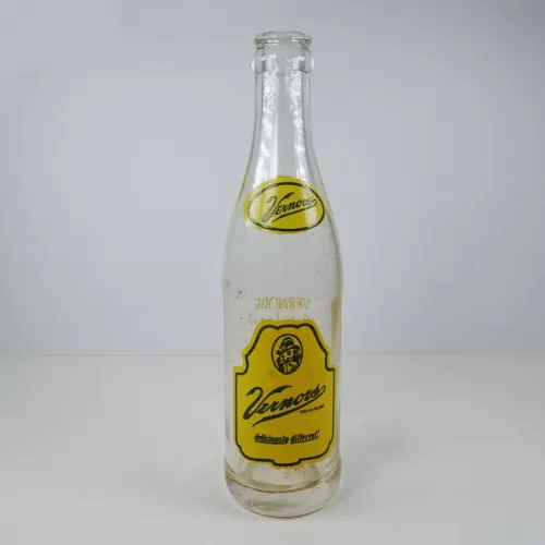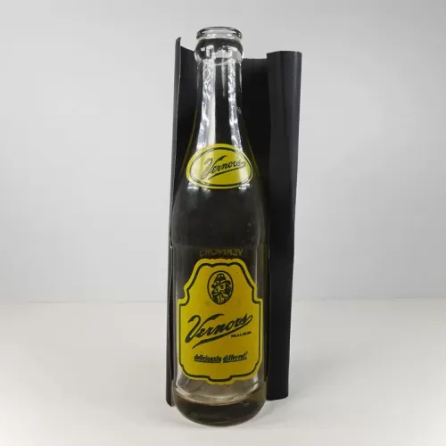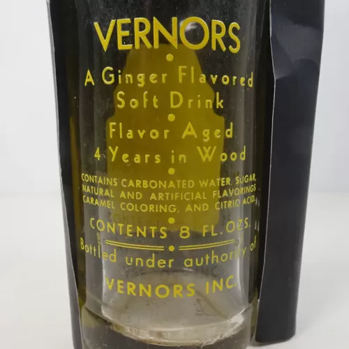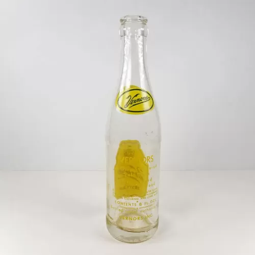 Vernors 1966 vintage 8 fl. oz. empty ACL soft drink bottle with green and yellow graphics