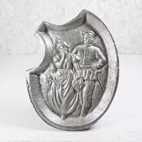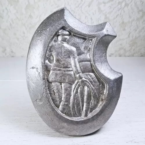 These type trays were used back in the day by waitresses. She would hold it with her thumb on the indentation by the woman's head on the tray. Her other fingers would brace it from behind. She would extend this to the customer hoping for a big tip