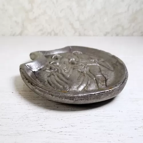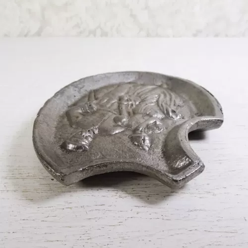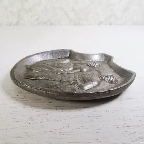 Naughty or risque vintage cast metal waitress tip tray or germaphobic novelty tray