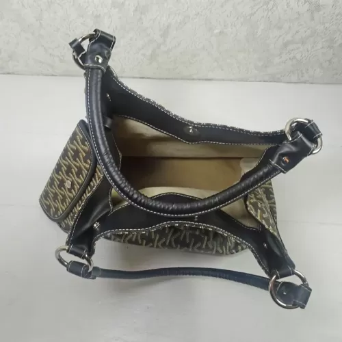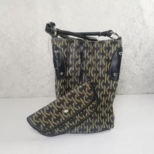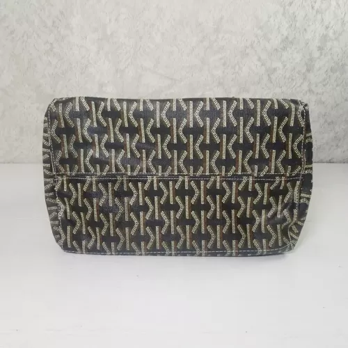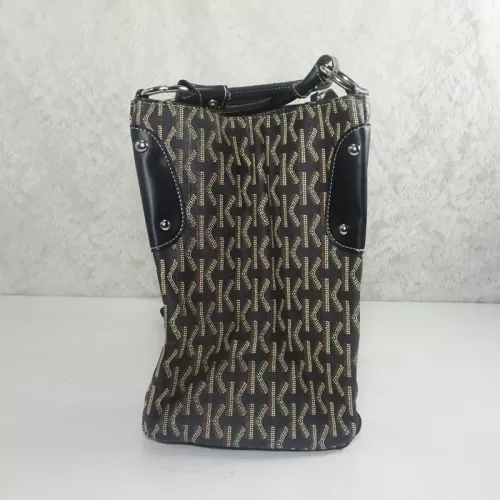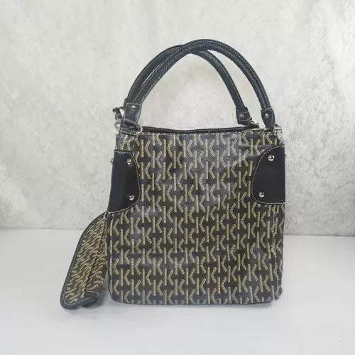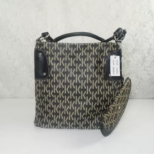 Letter K pattern throughout new tote, handbag, overnight bag with attached wallet that snaps shut and has a pocket on the front