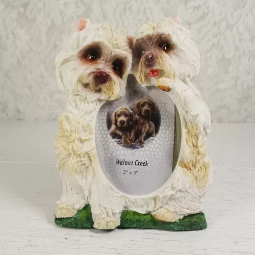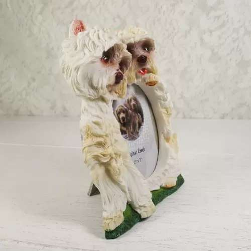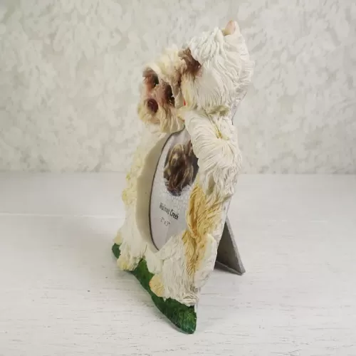 West Highland White Terrier or Westie photo frame in a highly detailed, life like, 3D polyresin figurine style