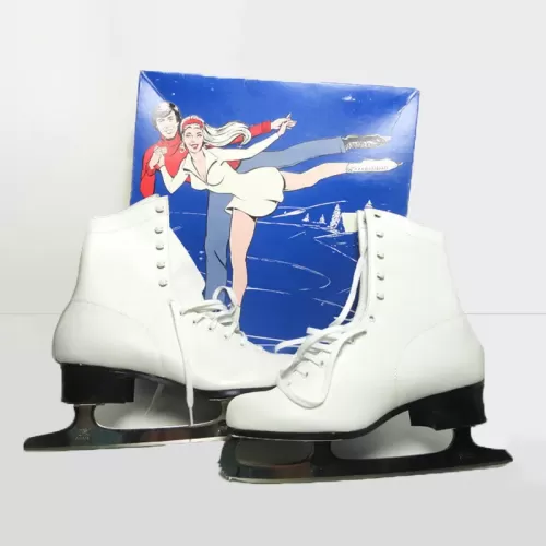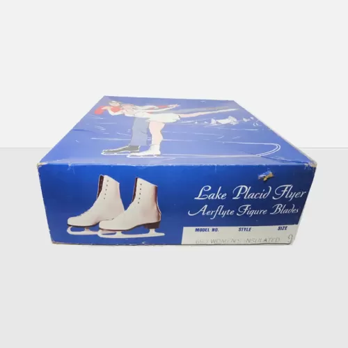 Women size 9 insulated white shoe vintage ice skates from Lake Placid in the original box